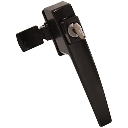 The Keyed Pushbutton Latch without tiedown is for use with out-swinging wood or metal doors with 1-3/4" hole spacing. Will fit doors 3/4" to 1-1/4" thick. For doors 1-3/8" to 2" thick, use screws longer than 1-3/8" (not included). One piece handle has a keyed push action button to unlatch door. Package includes instructions, mounting hardware and two keys.