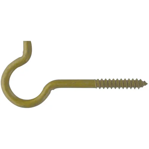 Hillman Gold-Plated Screw Hook, #0 x 4-15/16", is ideal for securing decor, lamps, and other items from the ceiling. This screw hook features a gold finish that resists corrosion and protects against abrasions & strong weather conditions for longer life. It features a curved lip for added security.