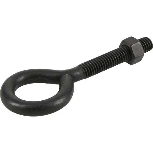Hillman 3/8-16 x 4-In. Black Eye Bolt w/ Hex Nut is ideal for securing ropes and cables. It is constructed from forged steel for durability and high tensile strength. It comes with a hex nut for easy installation and has a load capacity of 80 lbs.