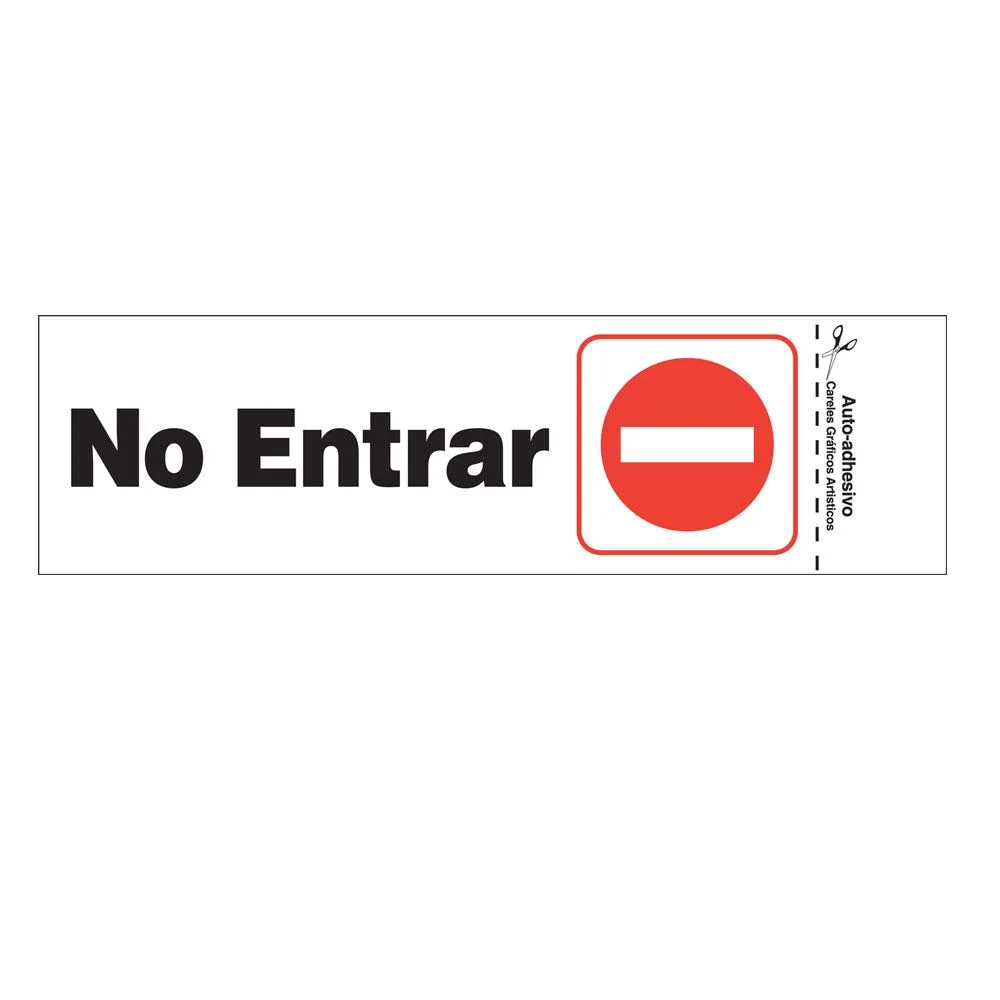 A Spanish language Do Not Enter (No Entrar) plastic sign. Sign is 3 inches tall by 9 inches wide. Includes 2 self-adhesive strips for mounting the sign. USA